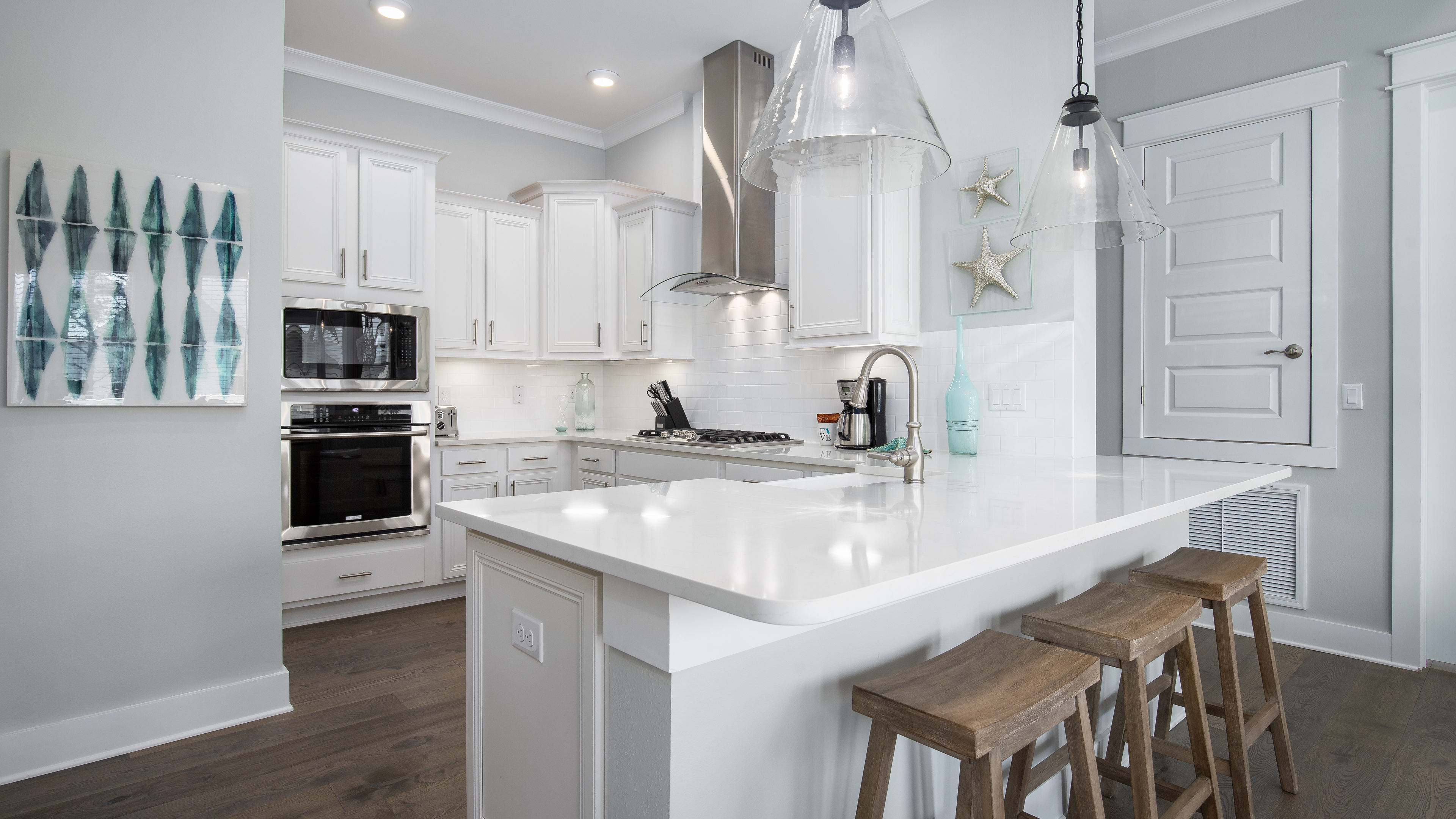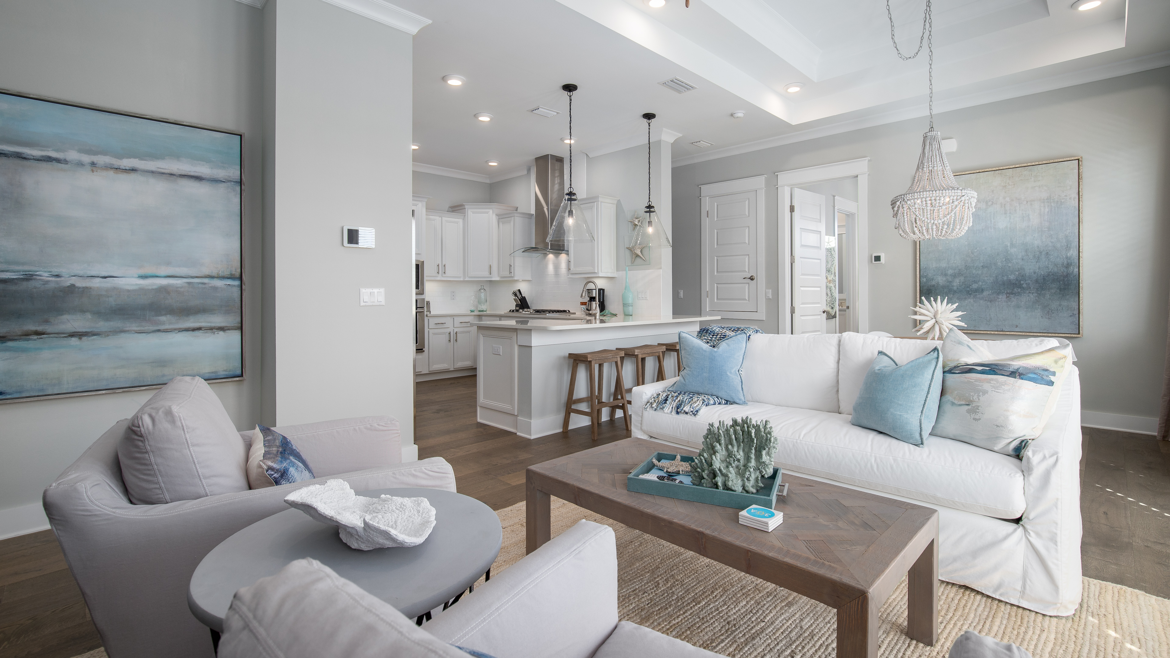 *Step into an elegant, coastal-inspired space with a fully stocked kitchen featuring granite counters and stylish lighting...